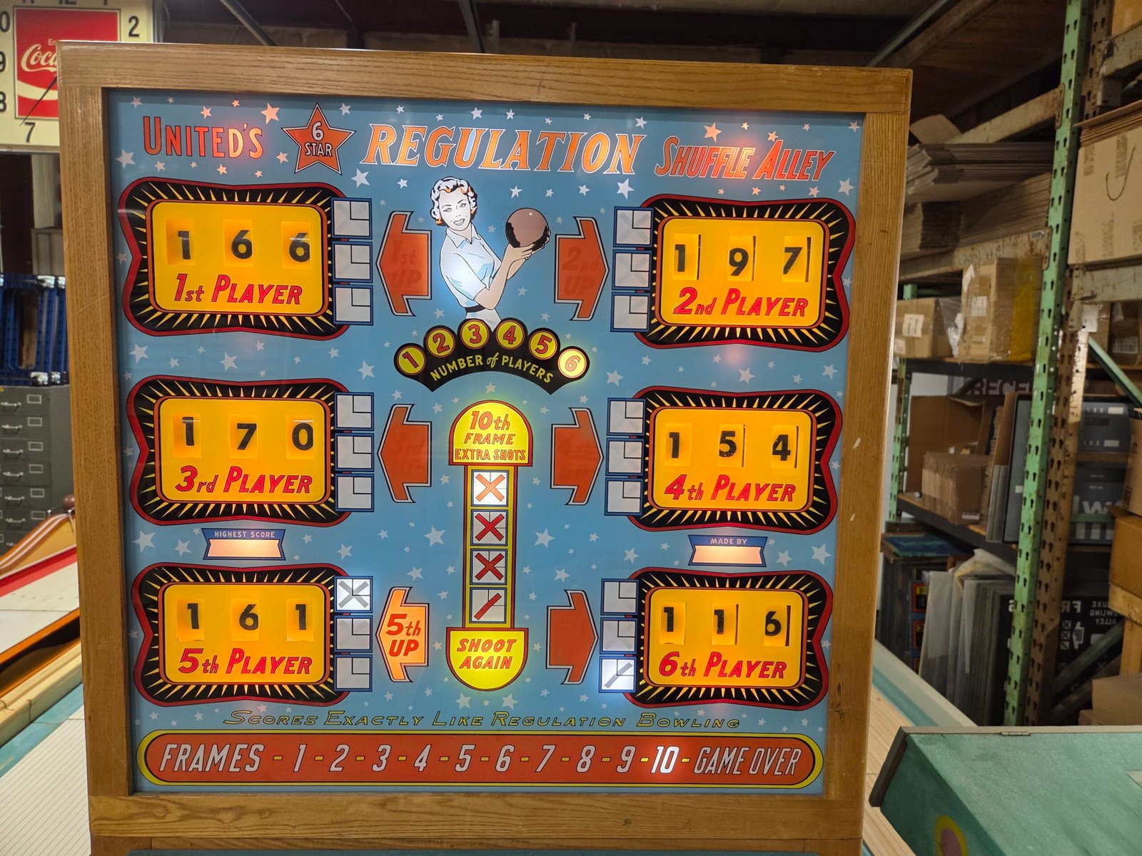 Previous Product 1958 United Regulation Shuffle Alley $565.00 1958 United Regulation Shuffle Alley quantity Add to cart Category: Other EM Backglasses and Parts Tags: 1958 United Regulation Shuffle Alley, backglass, Ball Bowler, Ball Bowlers, Big Ball Bowler, Big Ball Bowler Ball Bowler, Big Ball Bowlers, Bowler, Bowling, Bowling Machine, St. Louis Ball Bowler Company, St. Louis Ball Bowlers, stl-bb, stl-bb.com, United Description Additional information Description Additional information Weight 15 lbs Dimensions 38 × 5 × 32 in