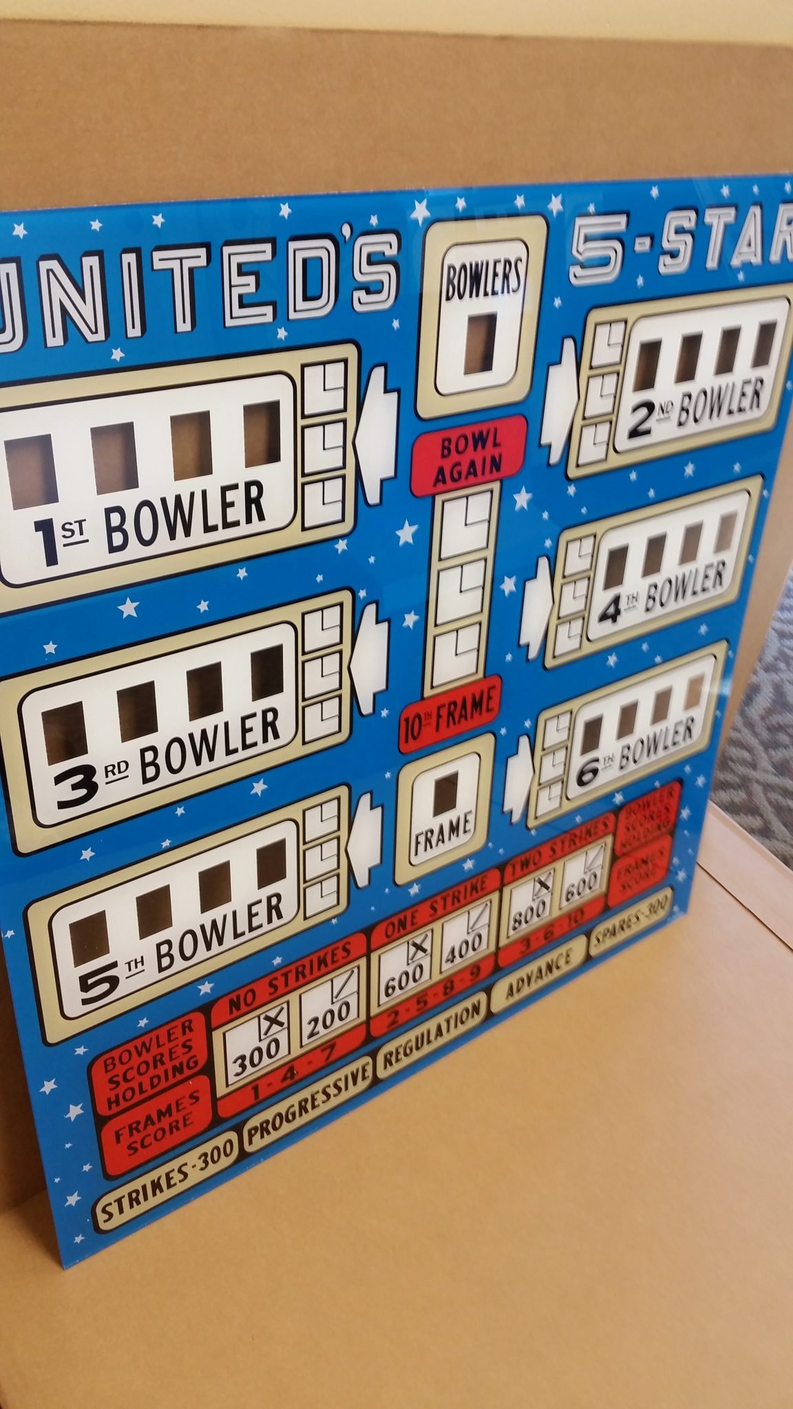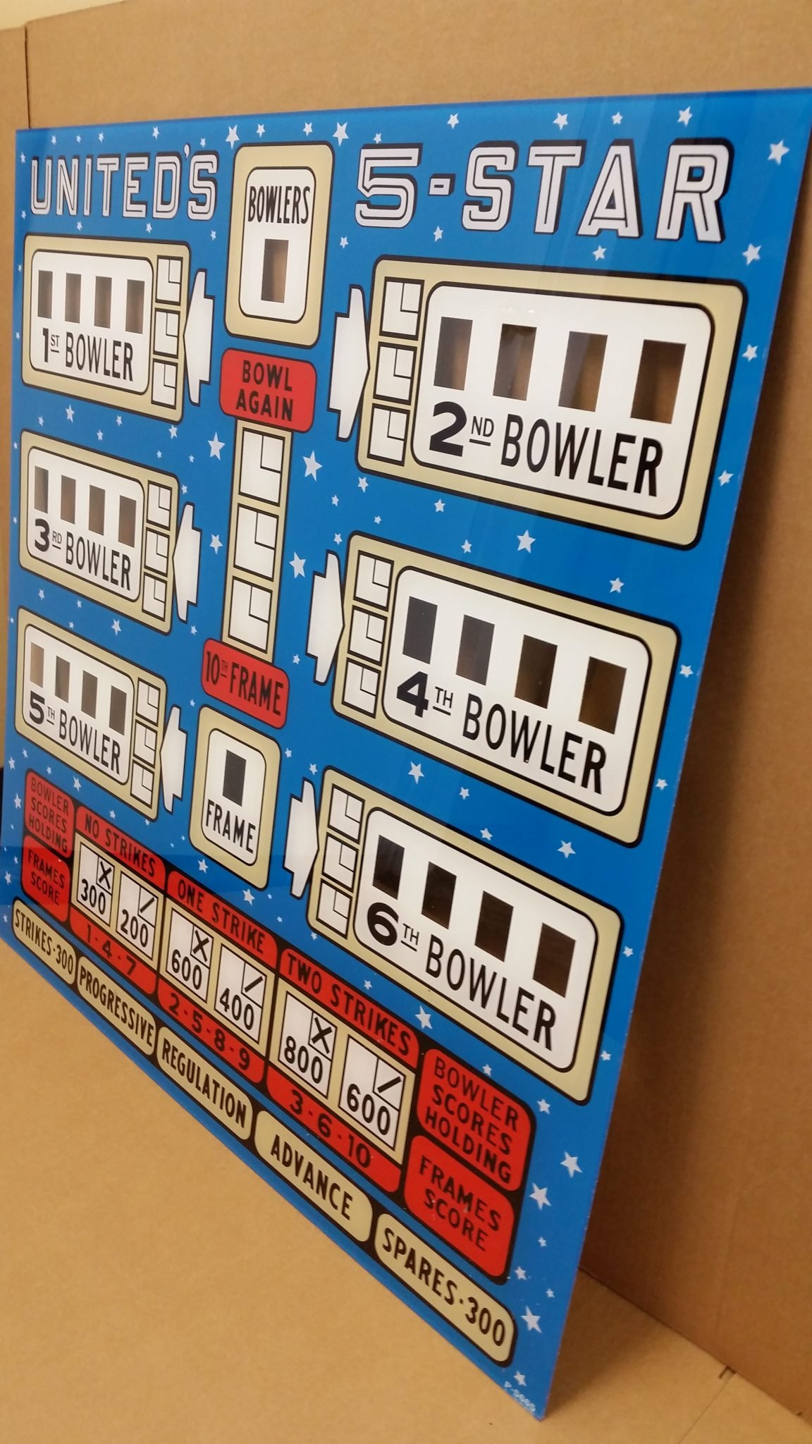This Upper Back Glass is a Brand New Reproduction for the 1961 United 5 Star. The colors are great. We have a wide variety of Back Glasses. THESE ARE NOT STICKERS.