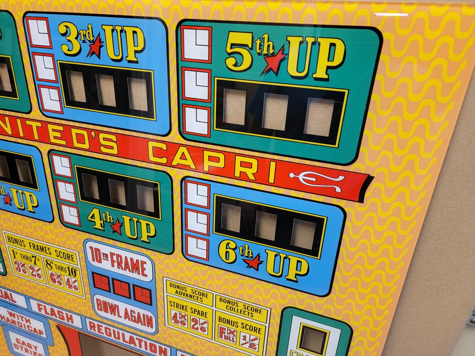 Previous Product Next Product 1963 United Capri Upper Backglass $565.00 1963 United Capri Upper Backglass quantity Add to cart Categories: United, Upper BackGlasses Tags: 1959 Bally Challenger Upper Backglass, 1963 United Capri Upper Backglass, backglass, Ball Bowler, Ball Bowlers, Big Ball Bowler, Big Ball Bowler Ball Bowler, Big Ball Bowlers, Bowler, Bowling, Bowling Machine, St. Louis Ball Bowler Company, St. Louis Ball Bowlers, stl-bb, stl-bb.com, United Description Additional information Description Additional information Weight 15 lbs Dimensions 38 × 5 × 34 in