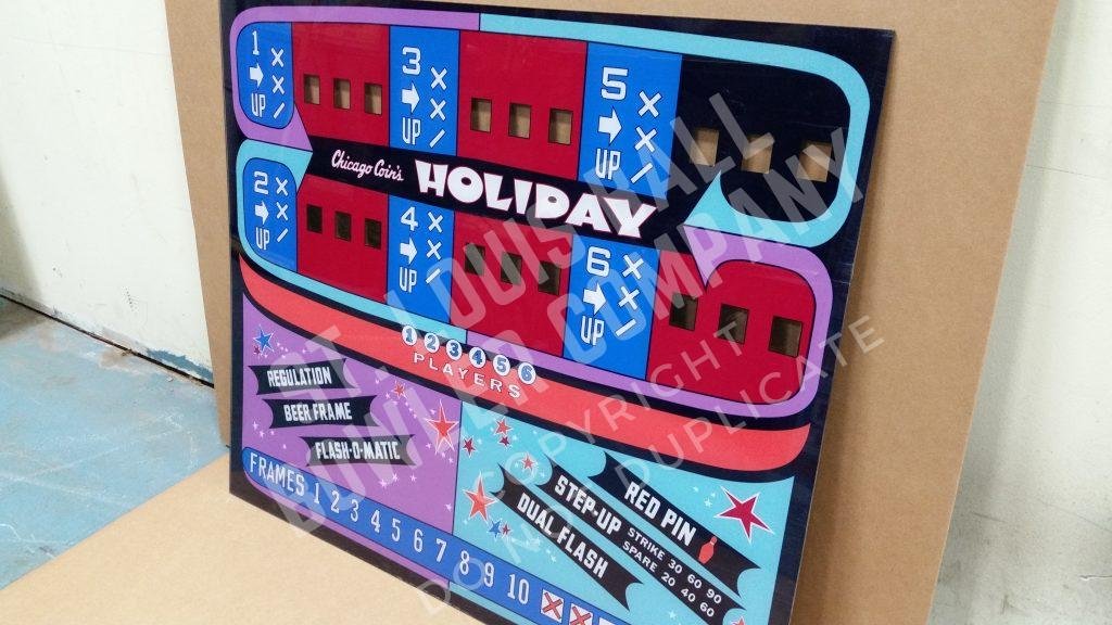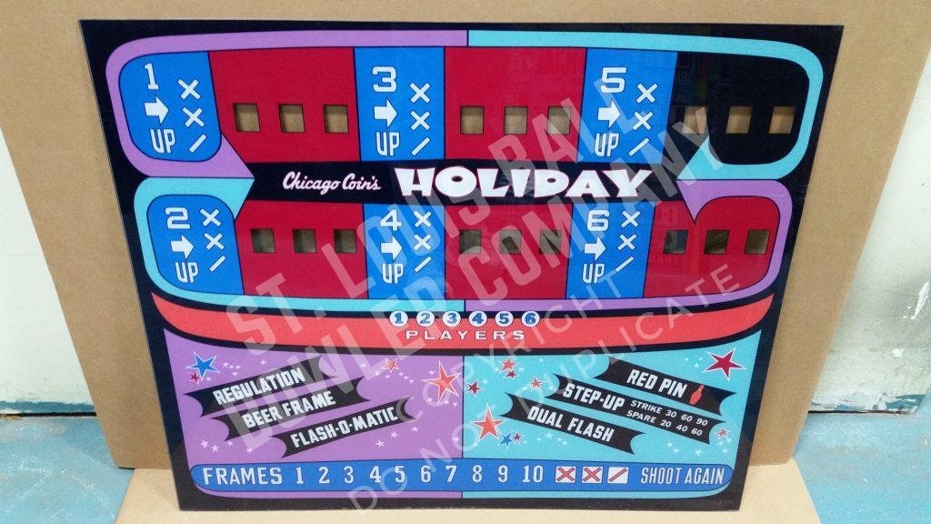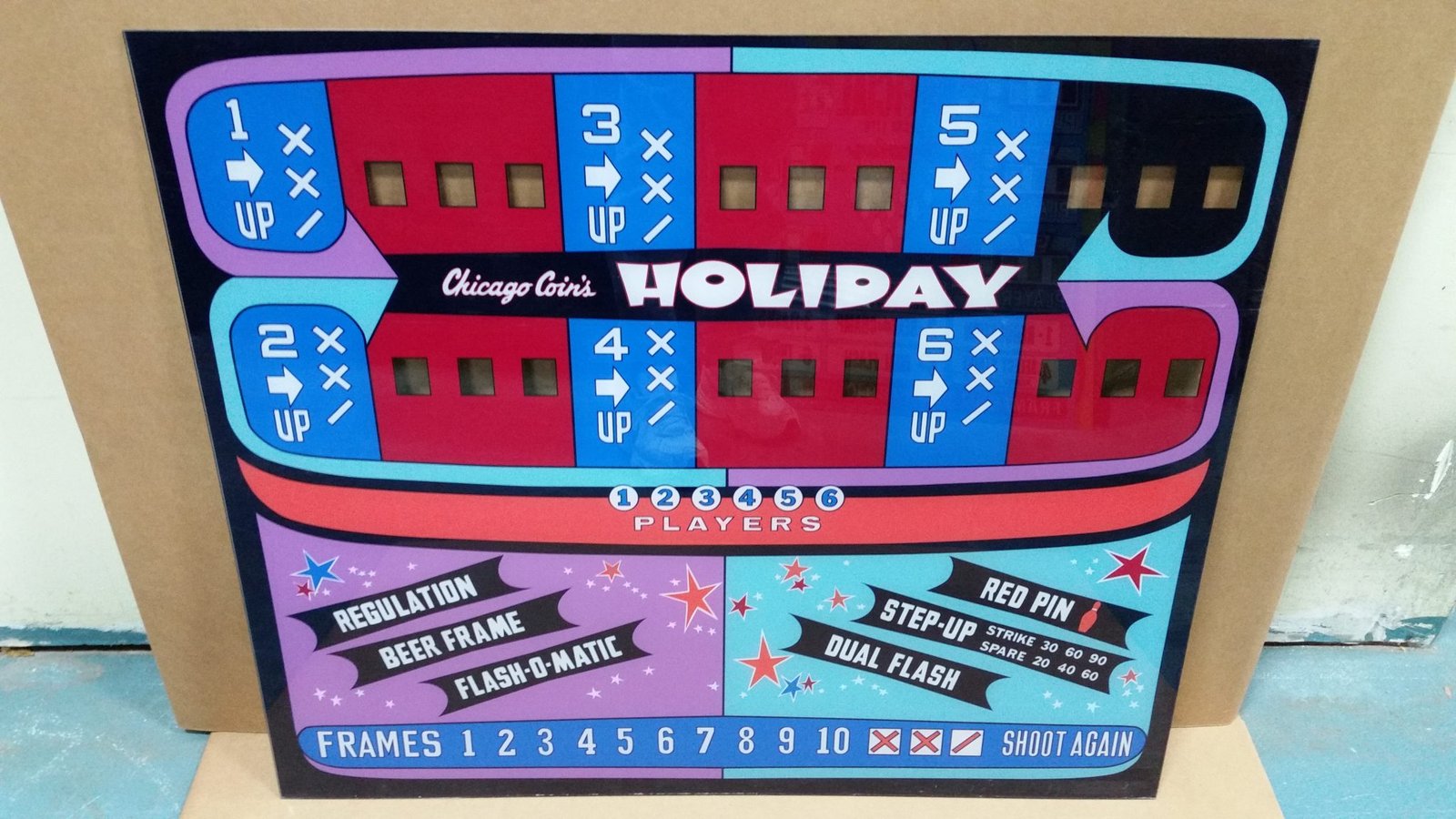 This Upper Back Glass is a Brand New Reproduction for the 1972 Chicago Coin Holiday Ball Bowler. The colors are great. We have a wide variety of Back Glasses. THESE ARE NOT STICKERS. *Note: Please allow 6-8 weeks for Delivery. |